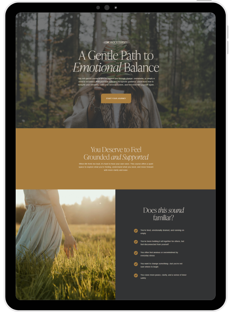 You’re not broken — and you don’t need to “fix” yourself. You just need the right kind of support. This gentle, practical course was designed by a therapist to help you understand what’s going on inside, and to walk you back to emotional balance — step by step.